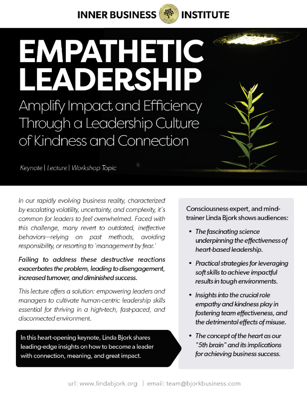 If you feel ready to transform your life as a heart-based leader, sign yourself or your company up for our mindfulness intelligence leadership training, growing everyone's aptitude for engagement, talent for impact, and capacity for change.